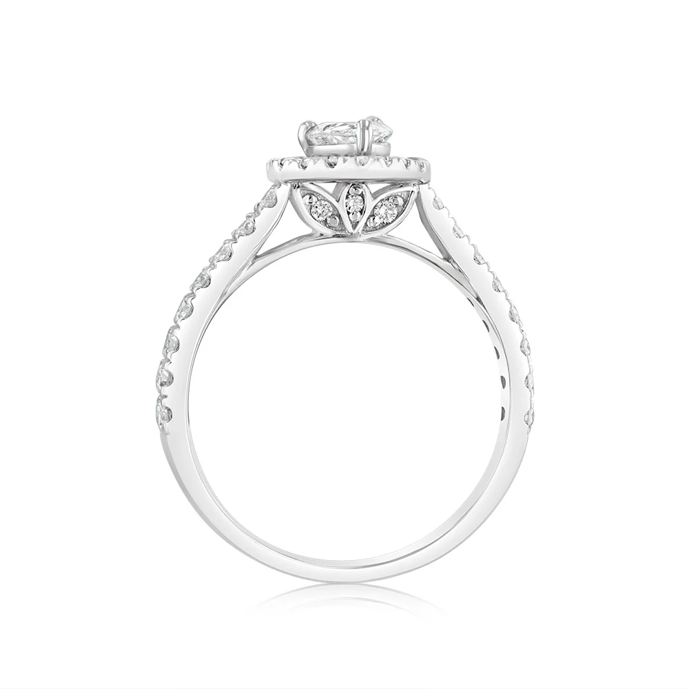 Luminesce Lab Grown 9ct White Gold 1 Carat Diamond Halo Solitaire Ring with Pear Centre Diamond